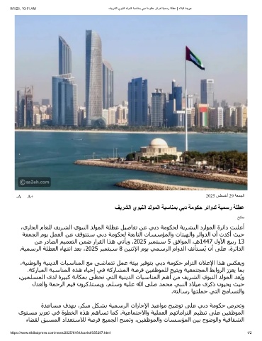 9/1/25, 10:11 AM فﯾرﺷﻟا يوﺑﻧﻟا دﻟوﻣﻟا ﺔﺑﺳﺎﻧﻣﺑ ﻲﺑد ﺔﻣوﻛﺣ رﺋاودﻟ ﺔﯾﻣﺳر ﺔﻠطﻋ | دﻼﺑﻟا ةدﯾرﺟ