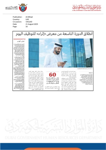 Publication: Al Etihad Country: UAE Circulation: 109,640 Date: 21 August 2025 Page: 16