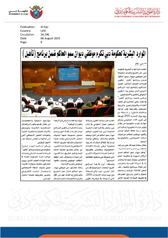 Publication: Al Fajr Country: UAE Circulation: 34,596 Date: 06 August 2025 Page: 6