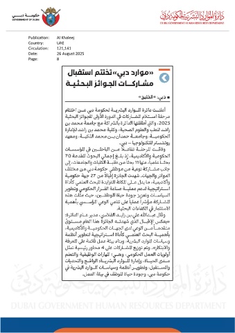 Publication: Al Khaleej Country: UAE Circulation: 121,141 Date: 26 August 2025 Page: 8