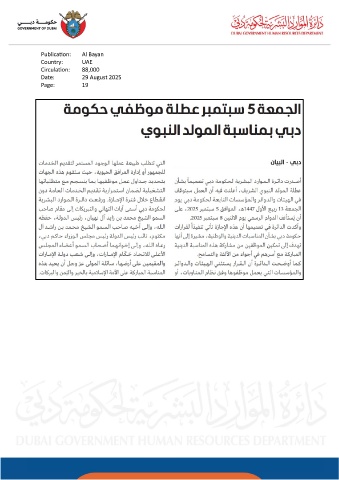 Publication: Al Bayan Country: UAE Circulation: 88,000 Date: 29 August 2025 Page: 19
