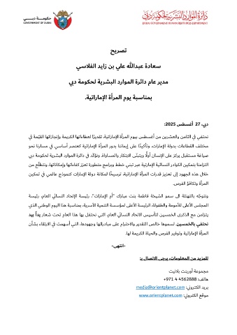 ي ف ةميقلا اهتازاجنإو ةميركلا اهتاءاطعل ا ريدقت ، ةيتاراملإا ةأرملا موي ب سطسغأ نم نيرشعلاو نماثلا ي ف يفتحن