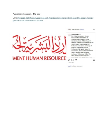 Publication: Instagram – Mid East Link: Mid East: DGHR concludes Research Awards submissions with 70 scientific papers from 27 governmental and academic entities