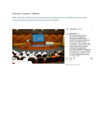 Publication: Instagram – Mid East Link: Mid-East: DGHR graduates and recognises employees of H.H. The Ruler’s Court under ‘Ta'heel’ program designed to develop second-tier leaders