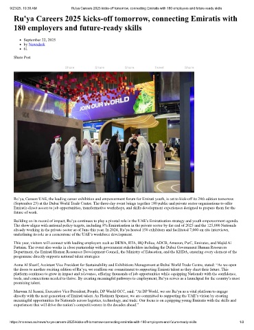 9/23/25, 10:30 AM Ru'ya Careers 2025 kicks-off tomorrow, connecting Emiratis with 180 employers and future-ready skills