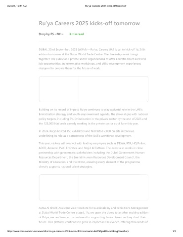 DUBAI, 22nd September, 2025 (WAM) -- Ru’ya, Careers UAE is set to kick-off its 24th