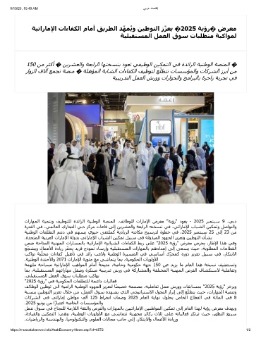تارﺎﮫﻤﻟا ﺔﯿﻤﻨﺗو ﻒﯿظﻮﺘﻠﻟ ةﺪﺋاﺮﻟا ﺔﯿﻨطﻮﻟا ﺔﺼﻨﻤﻟا ،ﻒﺋﺎظﻮﻠﻟ تارﺎﻣﻹا ضﺮﻌﻣ "ﺔﻳؤر" دﻮﻌﻳ - 2025 ﺮﺒﻤﺘﺒﺳ 9 ،ﻲﺑد