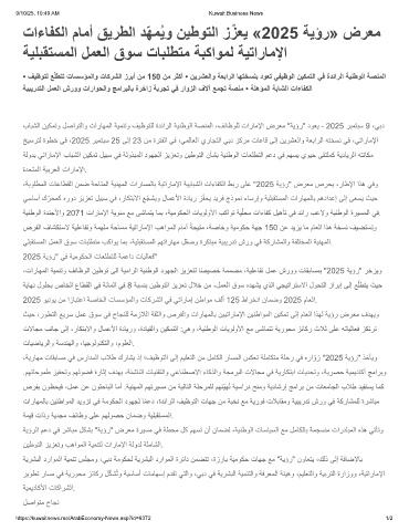 بﺎﺑﺷﻟا نﯾﻛﻣﺗو لﺻاوﺗﻟاو تارﺎﮭﻣﻟا ﺔﯾﻣﻧﺗو فﯾظوﺗﻠﻟ ةدﺋارﻟا ﺔﯾﻧطوﻟا ﺔﺻﻧﻣﻟا ،فﺋﺎظوﻠﻟ تارﺎﻣﻹا ضرﻌﻣ "ﺔﯾؤر" دوﻌﯾ - 2025 رﺑﻣﺗﺑﺳ 9 ،ﻲﺑد
