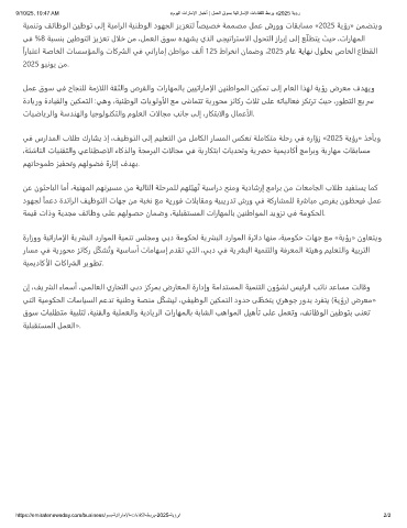 ﺔﻴﻤﻨﺗو ﻒﺋﺎﻇﻮﻟا ﻦﻴﻃﻮﺗ ﻰﻟإ ﺔﻴﻣاﺮﻟا ﺔﻴﻨﻃﻮﻟا دﻮﻬﺠﻟا ﺰﻳﺰﻌﺘﻟ ًﺎﺼﻴﺼﺧ ﺔﻤﻤﺼﻣ ﻞﻤﻋ شروو تﺎﻘﺑﺎﺴﻣ «2025 ﺔﻳؤر» ﻦﻤﻀﺘﻳو