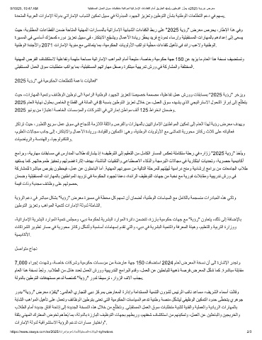 9/10/25, 10:47 AM ﺔﯾﻠﺑﻘﺗﺳﻣﻟا لﻣﻌﻟا قوﺳ تﺎﺑﻠطﺗﻣ ﺔﺑﻛاوﻣﻟ ﺔﯾﺗارﺎﻣﻹا تاءﺎﻔﻛﻟا مﺎﻣأ ﻖﯾرطﻟا دّﮭﻣُﯾو نﯾطوﺗﻟا ز ّ زﻌﯾ «2025 ﺔﯾؤر» ضرﻌﻣ