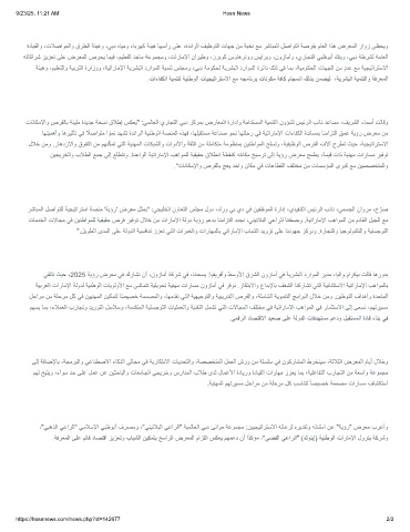 ةدﺎﯾﻘﻟاو ،تﻼﺻاوﻣﻟاو قرطﻟا ﺔﺋﯾھو ،ﻲﺑد هﺎﯾﻣو ءﺎﺑرﮭﻛ ﺔﺋﯾھ ﺎﮭﺳأر ﻰﻠﻋ ،ةدﺋارﻟا فﯾظوﺗﻟا تﺎﮭﺟ نﻣ ﺔﺑﺧﻧ ﻊﻣ رﺷﺎﺑﻣﻟا لﺻاوﺗﻟا ﺔﺻرﻔﺑ مﺎﻌﻟا اذھ ضرﻌﻣﻟا راوز ﻰظﺣﯾو