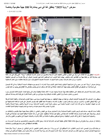 9/23/25, 11:20 AM 7 تارﺎﻣﻻا | لﺎﻣﻋا و دﺎﺻﺗﻗا | ﺔﺻﺎﺧو ﺔﯾﻣوﻛﺣ ﺔﮭﺟ 180 ﺔﻛرﺎﺷﻣﺑ ﻲﺑد ﻲﻓ اًدﻏ ﻖﻠطﻧﯾ "2025 ﺔﯾؤر" ضرﻌﻣ