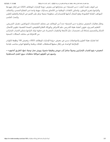 ﺎﻫدﻮﻬﺟ رﺎﻃإ ﻲﻓ «2025 ﻒﺋﺎﻇﻮﻠﻟ تارﺎﻣإلا ﺔﻳؤر» ضﺮﻌﻣ ﻲﻓ ﺎﻬﺘﻛرﺎﺸﻣ ﻦﻋ «ﺔﻴﺤﺼﻟا ﻲﺑد» ﺖﻨﻠﻋأ ﻪﺴﻔﻧ ﺖﻗﻮﻟا ﻲﻓ