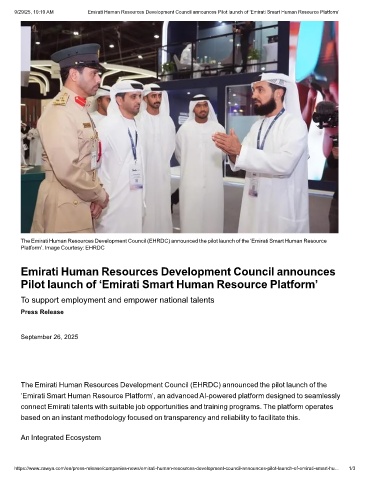 9/29/25, 10:10 AM       Emirati Human Resources Development Council announces Pilot launch of ‘Emirati Smart Human Resource Platform’