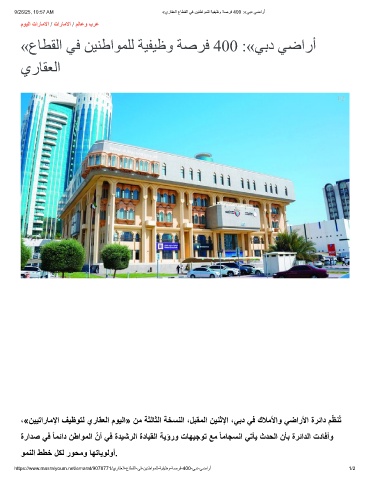 9/26/25, 10:57 AM «يرﺎﻘﻌﻟا عﺎطﻘﻟا ﻲﻓ نﯾﻧطاوﻣﻠﻟ ﺔﯾﻔﯾظو ﺔﺻرﻓ 400 :«ﻲﺑد ﻲﺿارأ