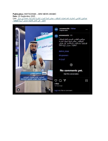 Publication: INSTAGRAM – ARN NEWS ARABIC Date: 25 September 2025 - Link: زكرم ىلإ ًاثدحتم ،ةيتاراملإا ةيرشبلا دراوملا ةيمنت سلجم فيظوتلا تايلمعل ماعلا فرشملا ،يحلافلا زيزعلادبع ."2025 ةيؤر" ضرعم تايلاعف شماه ىلع رابخلأا
