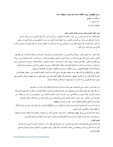 رثكأ ةكراشمب ،يراجلا ربمتبس 25 ىتح رمتسملا » 2025 ةيؤر« فئاظولل تاراملإا ضرعمب ةلودلا يف ةيحصلا تاسسؤملا تكراش