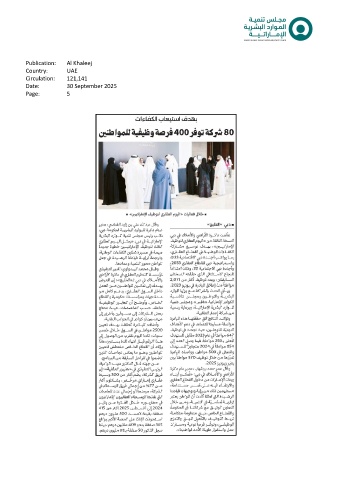 Publication: Al Khaleej Country: UAE Circulation: 121,141 Date: 30 September 2025 Page: 5