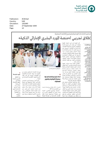 Publication: Al Etihad Country: UAE Circulation: 109,640 Date: 27 September 2025 Page: 10