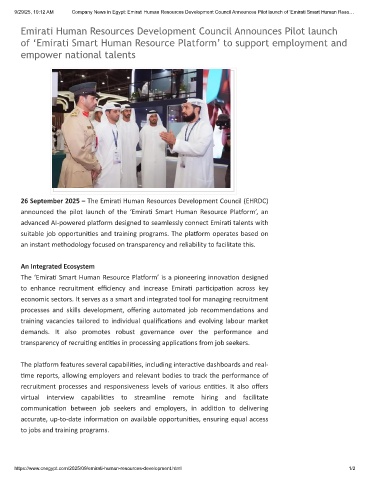 9/29/25, 10:12 AM  Company News in Egypt: Emirati Human Resources Development Council Announces Pilot launch of ‘Emirati Smart Human Reso…