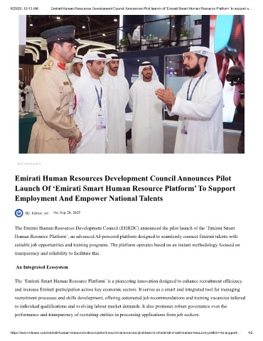9/29/25, 10:13 AM  Emirati Human Resources Development Council Announces Pilot launch of ‘Emirati Smart Human Resource Platform’ to support e…