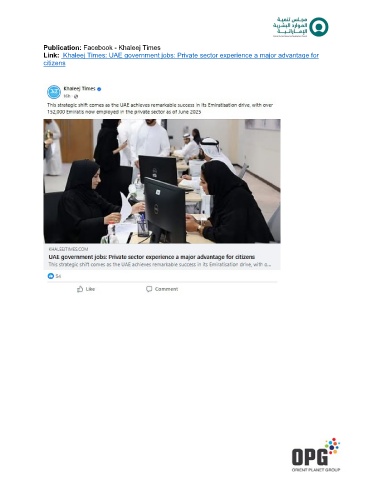 Publication: Facebook - Khaleej Times Link: Khaleej Times: UAE government jobs: Private sector experience a major advantage for citizens