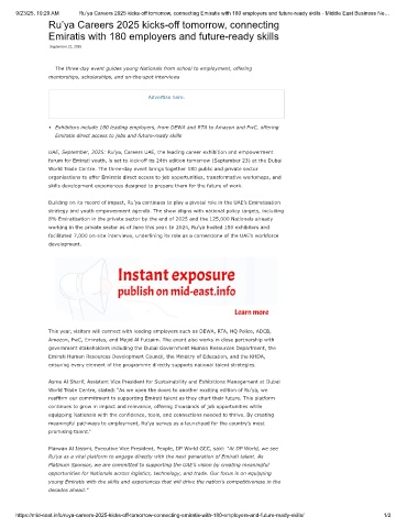 9/23/25, 10:29 AM Ru’ya Careers 2025 kicks-off tomorrow, connecting Emiratis with 180 employers and future-ready skills - Middle East Business Ne…