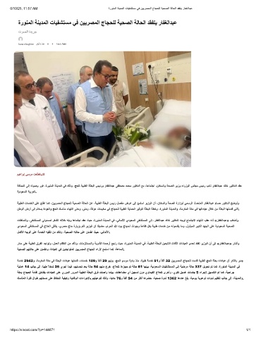 6/10/25, 11:57 AM ةروﻧﻣﻟا ﺔﻧﯾدﻣﻟا تﺎﯾﻔﺷﺗﺳﻣ ﻲﻓ نﯾﯾرﺻﻣﻟا جﺎﺟﺣﻠﻟ ﺔﯾﺣﺻﻟا ﺔﻟﺎﺣﻟا دﻘﻔﺗﯾ رﺎﻔﻐﻟادﺑﻋ