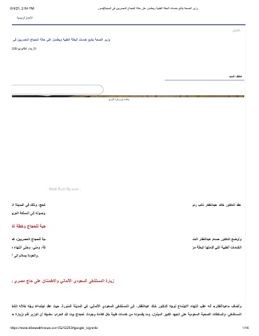 ﻣﻛ ،نﯾﯾرﺻﻣﻟا جﺎﺟﺣﻠﻟ ﺔﯾﺣﺻﻟا ﺔﻟﺎﺣﻟا نﻋ ،ﺔﯾﺑطﻟا ﺔﺛﻌﺑﻟا سﯾﺋر لﺻﻔﻣ ضرﻋ ﻰﻟإ ﻊﻣﺗﺳا رﯾزوﻟا نأ ،نﺎﻛﺳﻟاو ﺔﺣﺻﻟا ةرازوﻟ ﻲﻣﺳرﻟا ثدﺣﺗﻣﻟا رﺎﻔﻐﻟادﺑﻋ مﺎﺳﺣ روﺗﻛدﻟا ﺢﺿوأو