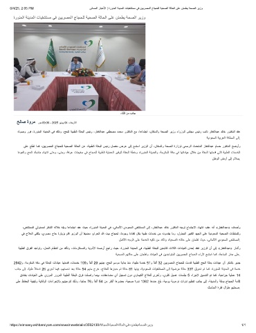ﻰﻠﻋ ﻊﻠطا ﺎﻣﻛ ،نﯾﯾرﺻﻣﻟا جﺎﺟﺣﻠﻟ ﺔﯾﺣﺻﻟا ﺔﻟﺎﺣﻟا نﻋ ،ﺔﯾﺑطﻟا ﺔﺛﻌﺑﻟا سﯾﺋر لﺻﻔﻣ ضرﻋ ﻰﻟإ ﻊﻣﺗﺳا رﯾزوﻟا نأ ،نﺎﻛﺳﻟاو ﺔﺣﺻﻟا ةرازوﻟ ﻲﻣﺳرﻟا ثدﺣﺗﻣﻟا رﺎﻔﻐﻟادﺑﻋ مﺎﺳﺣ روﺗﻛدﻟا ﺢﺿوأو