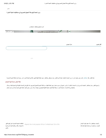 لﻼﺧ نﻣ ﺔﺛﻌﺑﻟا ﺎﮭﺗﻣدﻗ ﻲﺗﻟا ﺔﯾﺑطﻟا تﺎﻣدﺧﻟا ﻰﻠﻋ ﻊﻠطا ﺎﻣﻛ ،نﯾﯾرﺻﻣﻟا جﺎﺟﺣﻠﻟ ﺔﯾﺣﺻﻟا ﺔﻟﺎﺣﻟا نﻋ ،ﺔﯾﺑطﻟا ﺔﺛﻌﺑﻟا سﯾﺋر لﺻﻔﻣ ضرﻋ ﻰﻟإ ﻊﻣﺗﺳا رﯾزوﻟا نأ ،نﺎﻛﺳﻟاو ﺔﺣﺻﻟا ةرازوﻟ ﻲﻣﺳرﻟا ثدﺣﺗﻣﻟا ،رﺎﻔﻐﻟادﺑﻋ مﺎﺳﺣ روﺗﻛدﻟا ﺢﺿوأو