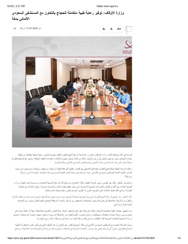 https://qna.org.qa/ar-QA/news/news-details?id=ﺔﻛﻣﺑ-ﻲﻧﺎﻣﻟﻻا-يدوﻌﺳﻟا-ﻰﻔﺷﺗﺳﻣﻟا-ﻊﻣ-نوﺎﻌﺗﻟﺎﺑ-جﺎﺟﺣﻠﻟ-ﺔﻠﻣﺎﻛﺗﻣ-ﺔﯾﺑط-ﺔﯾﺎﻋر-رﯾﻓوﺗ-فﺎﻗوﻻا-ةرازو&date=31/05/2025 1/2