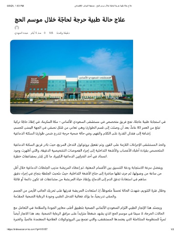 ﺔﻴﻛﺮﺗ ﺔﺟﺎﺣ ذﺎﻘﻧإ ﻲﻓ ،ﺔﻣﺮﻜﻤﻟا ﺔﻜﻣ – ﻲﻧﺎﻤﻟألا يدﻮﻌﺴﻟا ﻰﻔﺸﺘﺴﻣ ﻲﻓ ﺺﺼﺨﺘﻣ ﻖﻳﺮﻓ ﺢﺠﻧ ،ﺔﻠﺟﺎﻋ ﺔﻴﺒﻃ ﺔﺑﺎﺠﺘﺳا ﻲﻓ