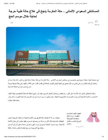 6/9/25, 1:53 PM لﻘﻧﻟا نﯾﻋ – ﺞﺣﻟا مﺳوﻣ لﻼﺧ ﺔّﺟﺎﺣﻟ ﺔﺟرﺣ ﺔﯾﺑط ﺔﻟﺎﺣ جﻼﻋ ﻲﻓ ﺢﺟﻧﯾ ﺔﻣرﻛﻣﻟا ﺔﻛﻣ – ﻲﻧﺎﻣﻟﻷا يدوﻌﺳﻟا ﻰﻔﺷﺗﺳﻣﻟا