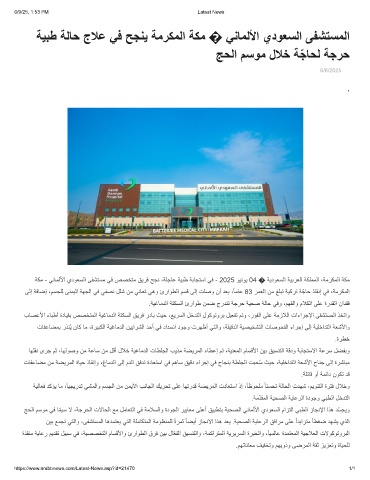 ﺔﻛﻣ - ﻲﻧﺎﻣﻟﻷا يدوﻌﺳﻟا ﻰﻔﺷﺗﺳﻣ ﻲﻓ صﺻﺧﺗﻣ ﻖﯾرﻓ ﺢﺟﻧ ،ﺔﻠﺟﺎﻋ ﺔﯾﺑط ﺔﺑﺎﺟﺗﺳا ﻲﻓ - 2025 وﯾﻧوﯾ 04 � ﺔﯾدوﻌﺳﻟا ﺔﯾﺑرﻌﻟا ﺔﻛﻠﻣﻣﻟا ،ﺔﻣرﻛﻣﻟا ﺔﻛﻣ