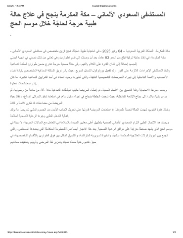 - ﻲﻧﺎﻣﻟﻷا يدوﻌﺳﻟا ﻰﻔﺷﺗﺳﻣ ﻲﻓ صﺻﺧﺗﻣ ﻖﯾرﻓ ﺢﺟﻧ ،ﺔﻠﺟﺎﻋ ﺔﯾﺑط ﺔﺑﺎﺟﺗﺳا ﻲﻓ - 2025 وﯾﻧوﯾ 04 – ﺔﯾدوﻌﺳﻟا ﺔﯾﺑرﻌﻟا ﺔﻛﻠﻣﻣﻟا ،ﺔﻣرﻛﻣﻟا ﺔﻛﻣ