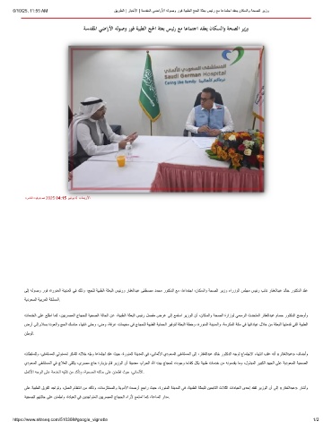 يدوﻌﺳﻟا ﻰﻔﺷﺗﺳﻣﻟا ﻲﻓ جﻼﻌﻟا ﻰﻘﻠﺗﯾ ،يرﺻﻣ جﺎﺣ ةرﺎﯾزﺑ مﺎﻗ رﯾزوﻟا نأ ﺎﻔﯾﺿﻣ ،مارﺣﻟا ﷲ تﯾﺑ جﺎﺟﺣﻟ ،ةدوﺟو ةءﺎﻔﻛ لﻛﺑ ﺔﯾﺑط تﺎﻣدﺧ نﻣ ﮫﻧوﻣدﻘﯾ ﺎﻣو ،لوذﺑﻣﻟا رﯾﺑﻛﻟا دﮭﺟﻟا ﻰﻠﻋ ﺔﯾدوﻌﺳﻟا ﺔﯾﺣﺻﻟا