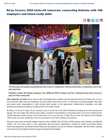 9/23/25, 9:14 AM Ru'ya Careers 2025 kicks-off tomorrow, connecting Emiratis with 180 employers and future-ready skills