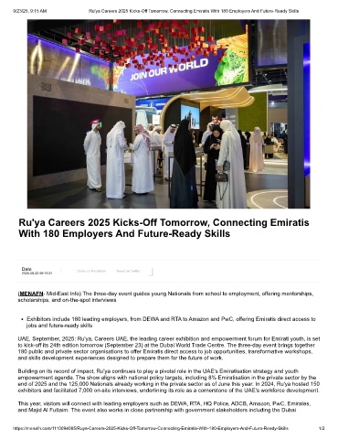 9/23/25, 9:15 AM Ru'ya Careers 2025 Kicks-Off Tomorrow, Connecting Emiratis With 180 Employers And Future-Ready Skills