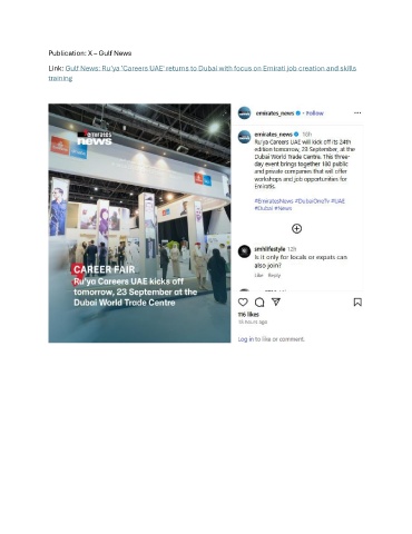 Publication: X – Gulf News Link: Gulf News: Ru’ya 'Careers UAE' returns to Dubai with focus on Emirati job creation and skills training