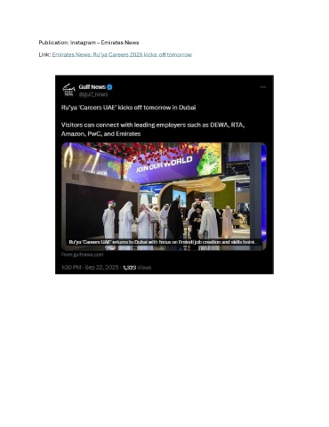 Publication: Instagram – Emirates News Link: Emirates News: Ru’ya Careers 2025 kicks-off tomorrow