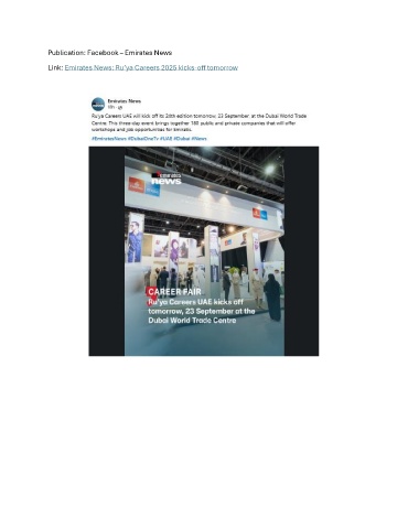 Publication: Facebook – Emirates News Link: Emirates News: Ru’ya Careers 2025 kicks-off tomorrow