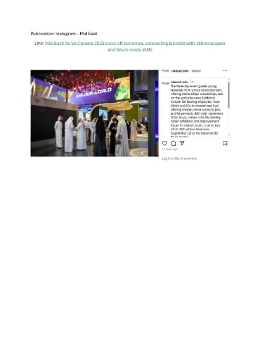 Publication: Instagram – Mid East Link: Mid-East: Ru’ya Careers 2025 kicks-off tomorrow, connecting Emiratis with 180 employers and future-ready skills
