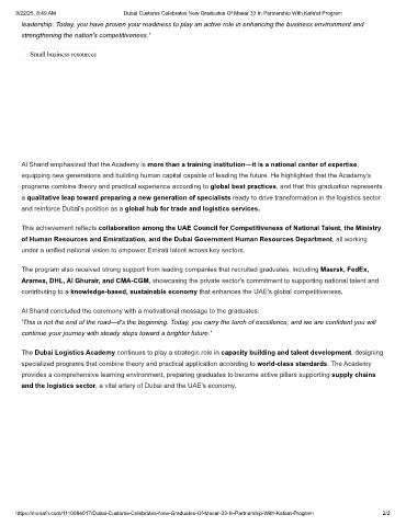9/22/25, 8:49 AM Dubai Customs Celebrates New Graduates Of Masar 33 In Partnership With Kafa'at Program