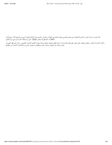 نﯾﻧﺛﻹا موﯾ ﻲﻣﺳرﻟا ماودﻟا فﻧﺄﺗﺳُﯾ نأ ﻰﻠﻋ ،2025 رﺑﻣﺗﺑﺳ 5 ﻖﻓاوﻣﻟا ،ـھ1447.