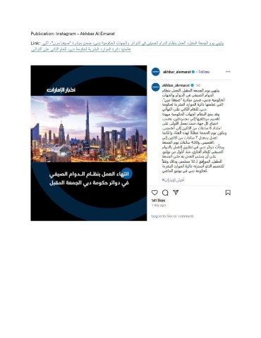 Publication: Instagram – Akhbar Al Emarat Link: يتلا ،"نرم انفيص" ةردابم نمض ،يبدب ةيموكحلا تاهجلاو رئاودلا يف يفيصلا ماودلا ماظنب لمعلا ،لبقملا ةعمجلا موي يهتني .يلاوتلا ىلع يناثلا ماعلل ،يبد ةموكحل ةيرشبلا دراوملا ةرئاد اهتمَّمع