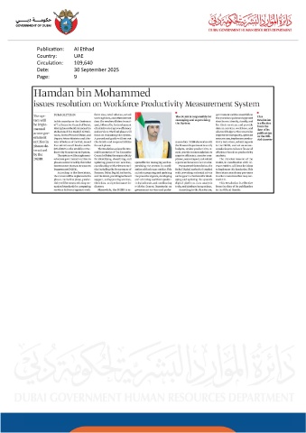 Publication: Al Etihad Country: UAE Circulation: 109,640 Date: 30 September 2025 Page: 9