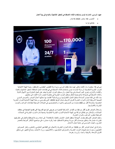 ،ةياغلاو ةيجاتنلإا زيفحتل ،ةفلتخملا لمعلا تاعاطق يف يعانطصلاا ءاكذلا مادختساب نمؤت تاراملإا ةلود نأ ،ةيموكحلا ةيرشبلا دراوملل