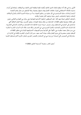 ﻊﻀﻧ ،ﻤﻟﺎﻌﻟا يرﺎﺠﺘﻟا ﺑد ﺰﻛﺮﻣ ﻓو ﺎﻨﺣﺎﺠﻨﻟ ﺔﻴﺳﺎﺳﻷا ةﺰﻴﻛﺮﻟا نﻮﻔﻇﻮﻤﻟا ﺪﻌﻳ» :ﻪﻟا ﺪﻴﺒﻋ ةﺎﺠﻧ ةرﻮﺘﻛﺪﻟا ﺖﻓﺎﺿأو