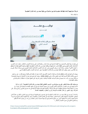 لبقت سملا تادايق نيكمت" جمانرب ذيفنتل ،ةيموكحلا ةرادلإل دشار نب دمحم ةيلك عم ةيجيتارتسا نواعت ةيقافتا يبدب يريخلا لمعلاو ةيملاسلإا